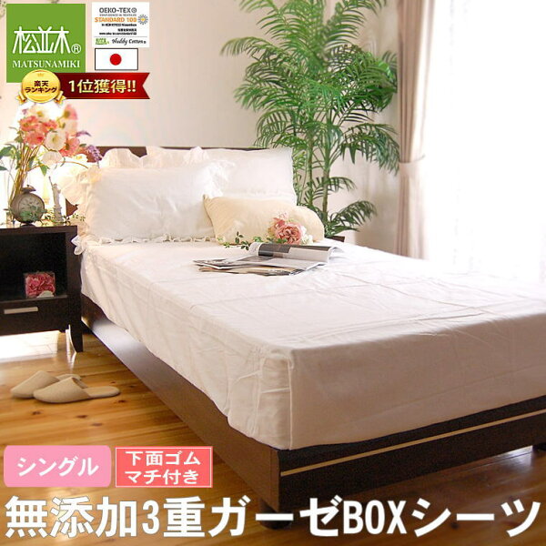 3枚重ねガーゼボックスシーツシングルサイズ▼ガーゼボックスシーツ素材綿100% 肌に優しい【Nuddy Cotton】(R) 40番手 単糸 平織り 超厚手118本ガーゼ3枚重ね松並木は、ガーゼではない、ドビー織り(ダブルガーゼ(Wガーゼ)の2重織りやトリプルガーゼの3重織り)や、ジャガード織り(5重織り、6重織りの模様柄)や、今治タオルの表ガーゼ裏パイルタオルケットとは異なり、正規のガーゼ規格である、『平織り&40番手単糸』ガーゼを3枚重ねて作った、本物のガーゼ製品です。