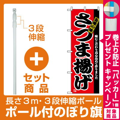 【プレゼント付】【セット商品】3m・3段伸縮のぼりポール(竿)付 のぼり旗 (2742) さつま揚げ